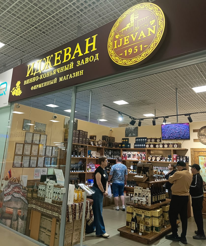 Обязательно посетите магазин Иджеван в ТЦ Грани, где кроме винно-коньячного ассортимента, представлены варенья, напитки, компоты и прочие закрутки по национальным армянским рецептам.